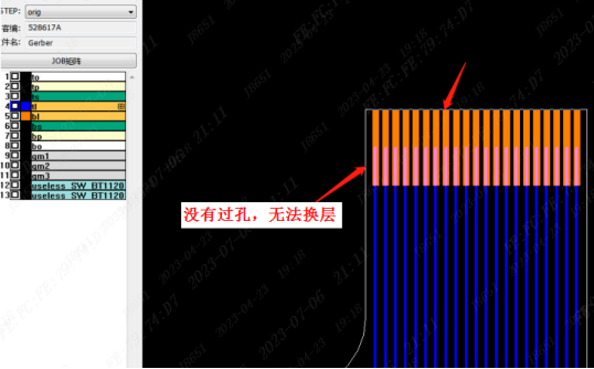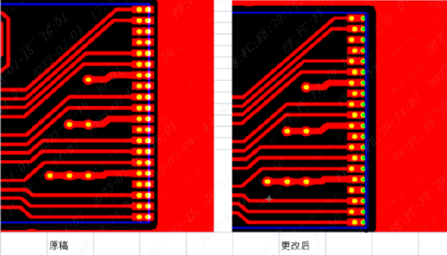 6、嘉立创暂不支持缕空板,反向手指需增加焊盘及过孔来实现换层。