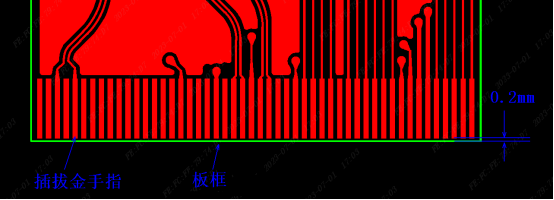 1、插拔手指:激光切割时板边遇高温碳化导致金手指之间出现微短问题需要把金手指内缩0.2mm(嘉立创会统一内缩,有特殊要求需要提出来)。