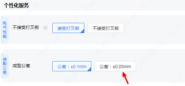 9、金手指外形公差默认为+/-0.1mm,如果要求+/-0.05mm,需要在下单时选择。