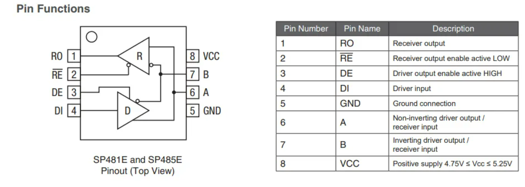 当TX为高电平时,反相器输出DE为低电平,此时根据SP485E的真值表可以看到,A B输出均为高阻态,但是由于外部A的上拉电阻和B的下拉电阻,输出A 1 B 0: