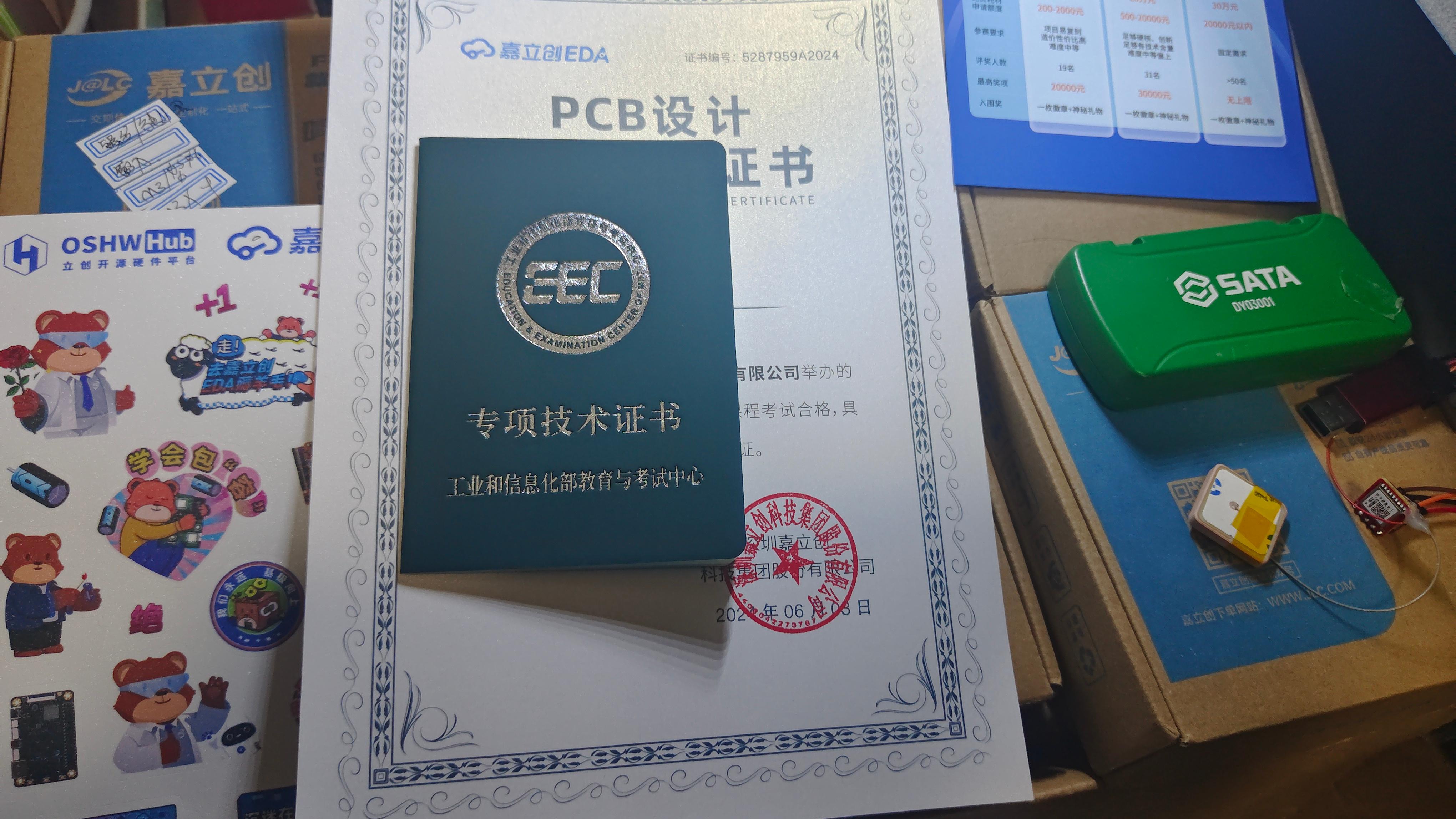 哦~终于到喽,等了大半年滴证书グッ!(๑•̀ㅂ•́)و✧| ू•ૅω•́)ᵎᵎᵎ| ू•ૅω•́)ᵎᵎᵎグッ!(๑•̀ㅂ•́)و✧(*´罒`*)(¦3[▓▓] (●°u°●) 」#PCB技术证书##嘉立创PCB##星火计划2024##DIY设计#