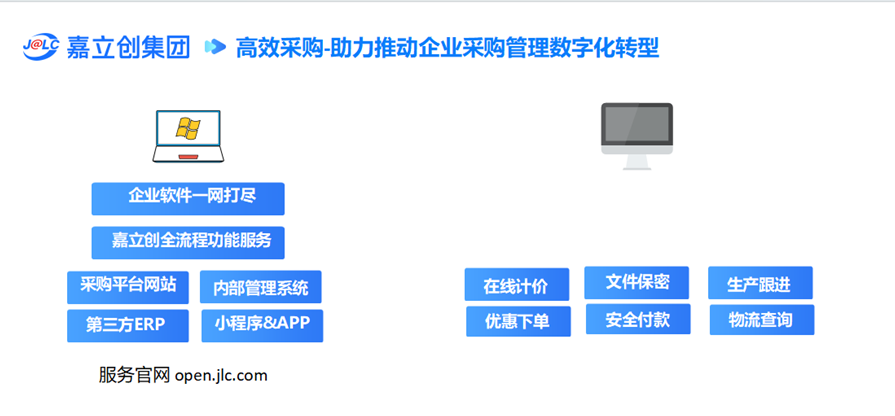 便捷、高效、安全,一直是嘉立创为用户提供服务的关键词。现为更好地服务企业归属用户,嘉立创特别推出企业服务功能,提供给企业软件(ERP,微信小程序,采购网站等)调用嘉立创PCB计价、下单、支付、查询订单、跟进生产、物流等核心功能!