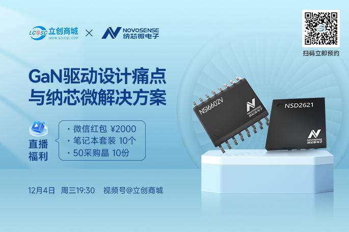 如果你想了解更多GaN驱动设计痛点解决方案,便于帮助你更好选购产品。欢迎预约12月4日19:30开始的立创商城视频号直播,纳芯微嘉宾将在线详细讲解!