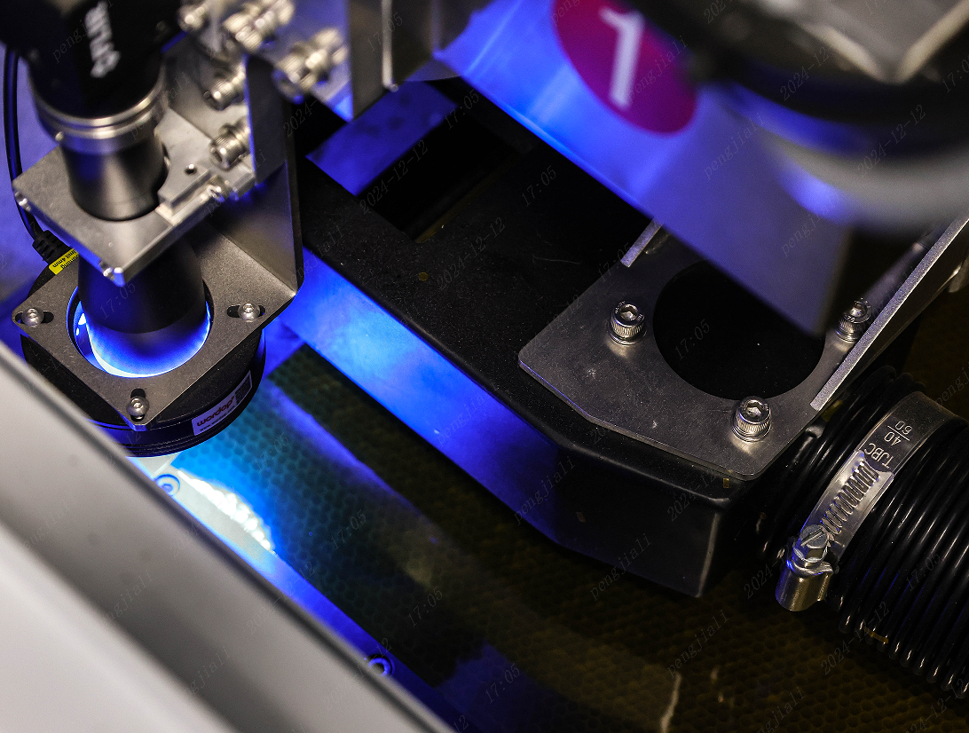 利用大族皮秒紫外高功率单脉冲激光切割机,在裁切好的盖膜上按要求开孔,这些孔洞不仅将用于后续的元件连接,还可用于电热膜生产后续工序中的定位,便于后续产线成品精密制作。