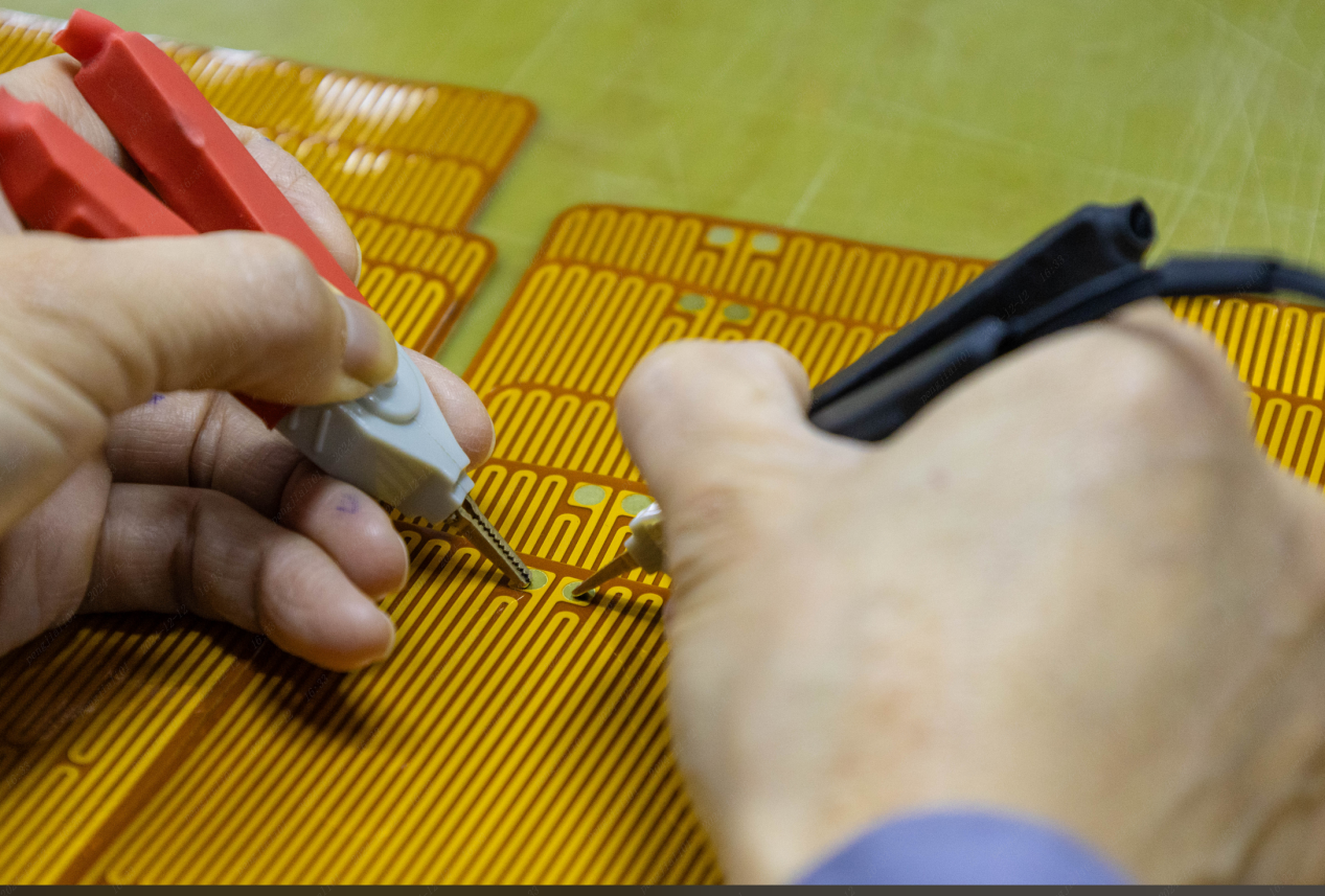 根据设计文件的要求,将电热膜的线路基材(如黄铜、不锈钢、铁铬铝等)裁剪成所需的尺寸和形状。通过精密裁剪设备,以确保材料的尺寸和形状符合设计要求,为后续的加工打下基础。