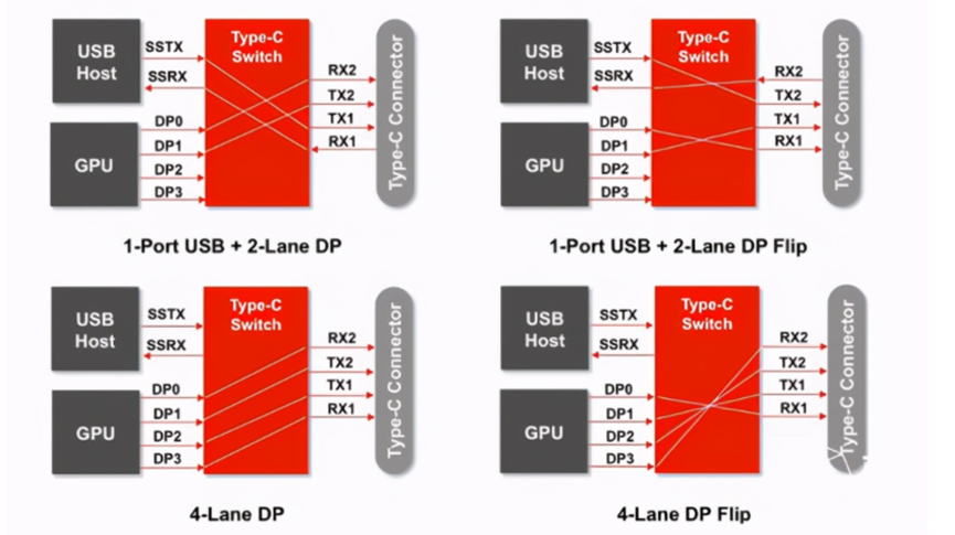 Type-C转DP接口技术利用Type-C接口中的Alt Mode(交替模式)功能,实现了从Type-C到DisplayPort的信号转换。Type-C接口以其双面可插、高速数据传输和多功能集成特性而备受青睐。它采用了24个引脚设计,包括电源与接地、数据传输、配置通道(CC)以及辅助功能(SBU)等,使其能够支持高达100W的功率传输和USB 3.2 Gen2或Thunderbolt 3等高速数据传输标准。
