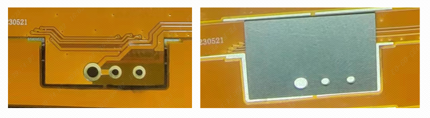 插件孔周围做钢片补强会导致短路,建议改为FR4或PI补强。