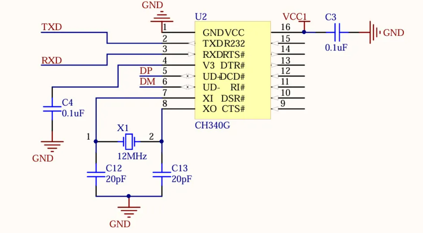 串口使用CH340G,这个芯片需要外置晶振。