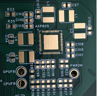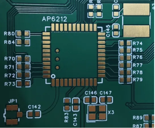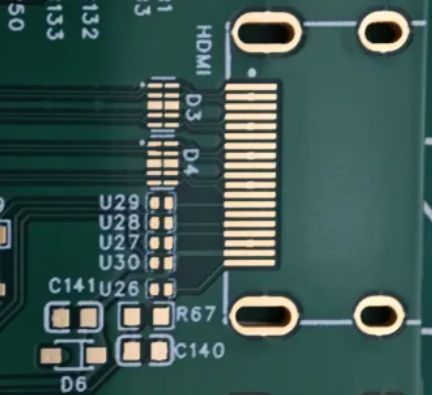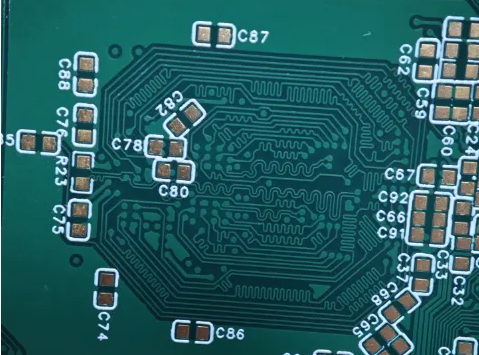 第三是阻焊层,也就是平时大家说的绿油,正反面都是绿色,而且要分布均匀。