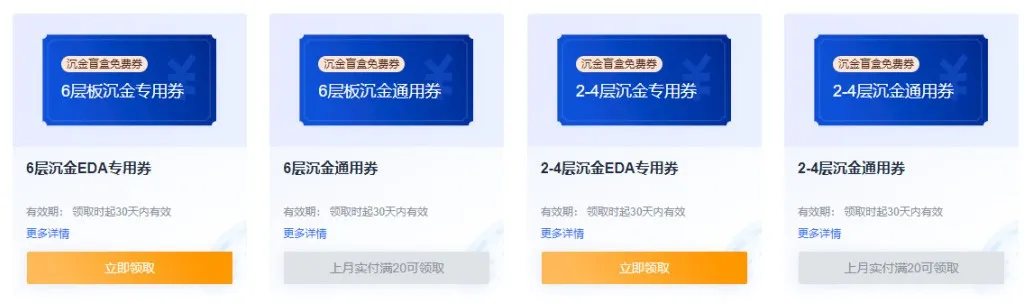 在我一筹莫展的时候,嘉立创PCB专员提醒了我,让我去领取6层板沉金专用券,我豁然开朗!