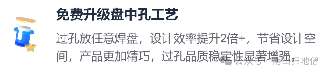 总体来说,这款板子复杂度是有的,估计得有6~8层的样子。自己画板子的硬件工程师都知道,4片DDR SDRAM那部分扇出还是有一定难度的,各种等长绕线,不过现在还好,嘉立创帮工程师免费升级了盘中孔工艺,过孔放在任意焊盘,设计效率直接翻倍,不仅节省了空间,产品设计也更加精巧。