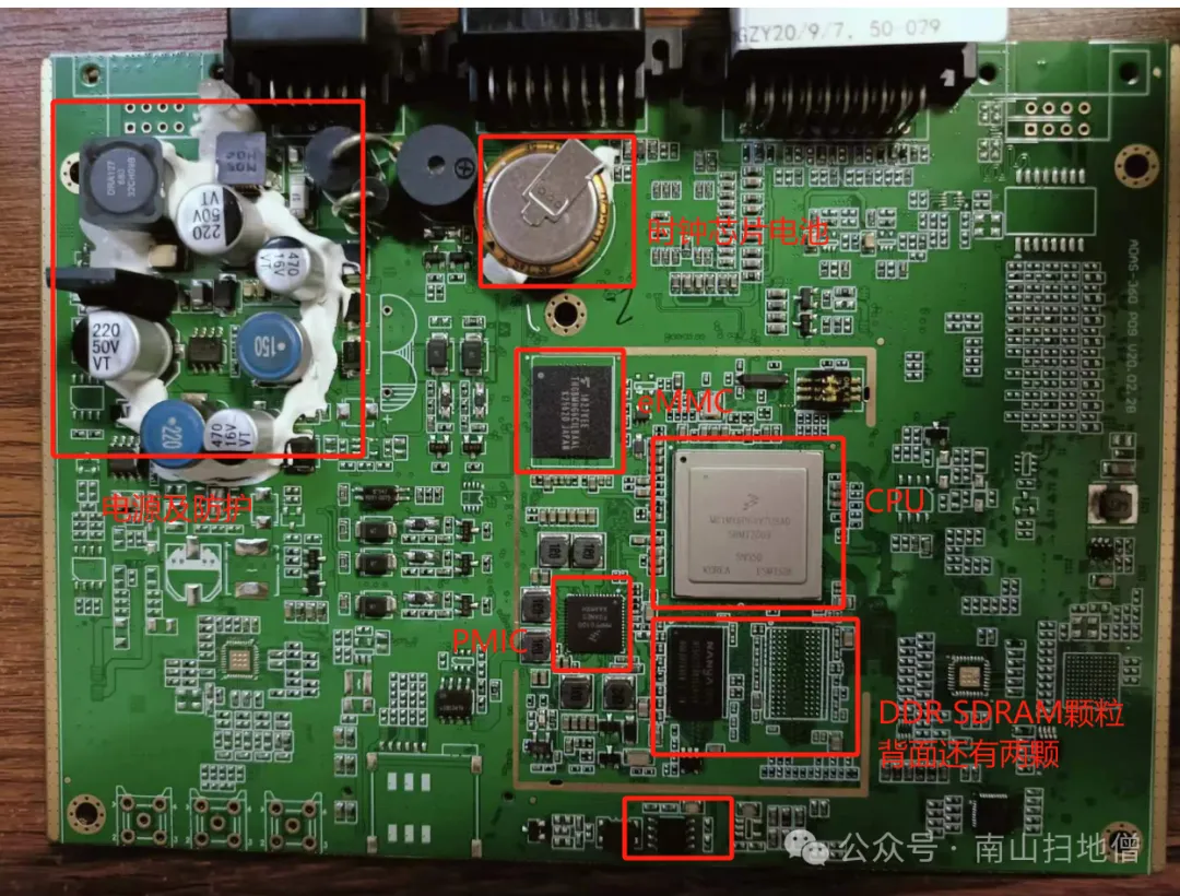 资源很丰富啊,经过一番查阅资料,将板子背面的主要核心功能部分标示如下,板边周边一圈金灿灿的地笼设计也是为了最大程度的锁住板子上的干扰,当然我们也可以增加平面层来较少干扰,比如某些原来4层的板子RE测试不过时,我们可以增加两个平面层做成6层板来减少板内向外的整体辐射,之前自己做东西一直在用嘉立创,服务和性价比还可以,并且嘉立创6层板打样也免费。