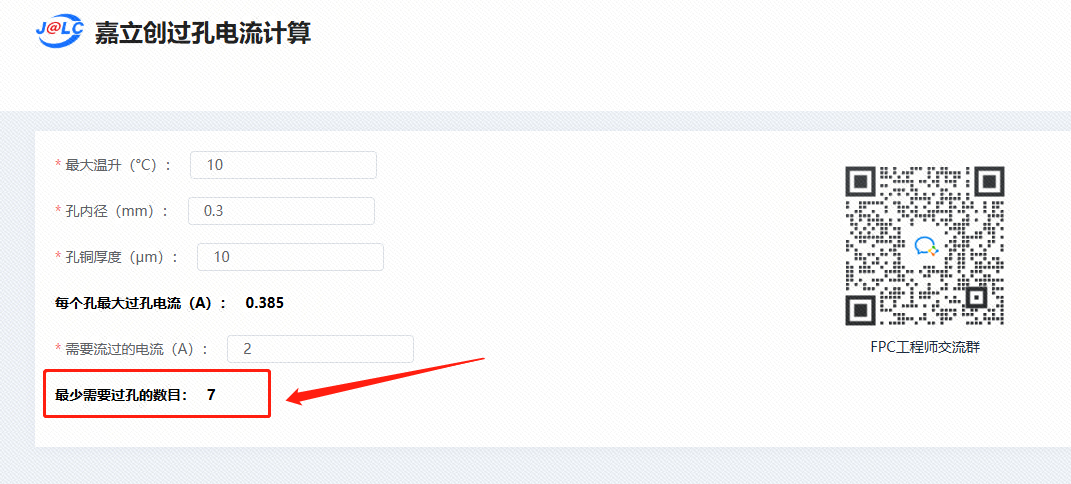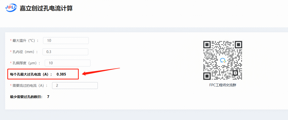 输入孔铜厚(单位OZ),孔径(单位mm),最大温升,即可计算单个过孔最大电流