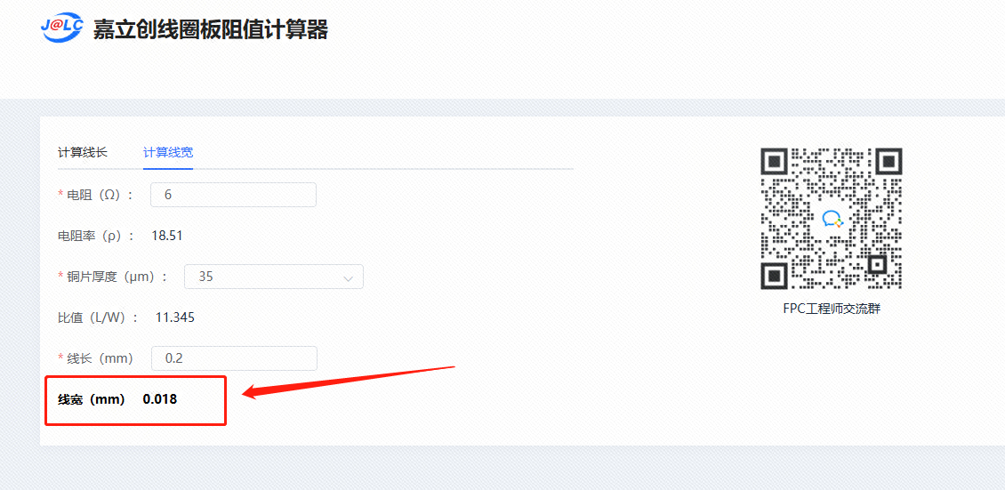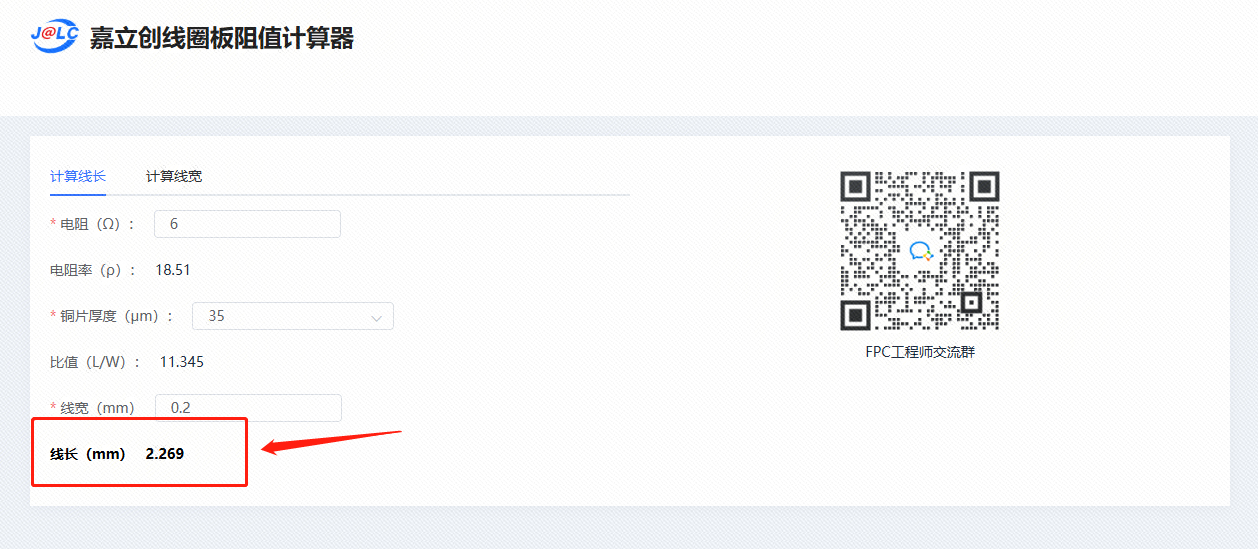 1、根据内阻计算公式R=(ρ·L)/(T·W),输入电阻,铜片厚度,线宽即可计算出线长