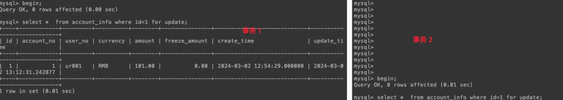 如果查询条件是普通字段(没有索引/主键),那么select ..... for update会进行锁表,这点一定要注意。