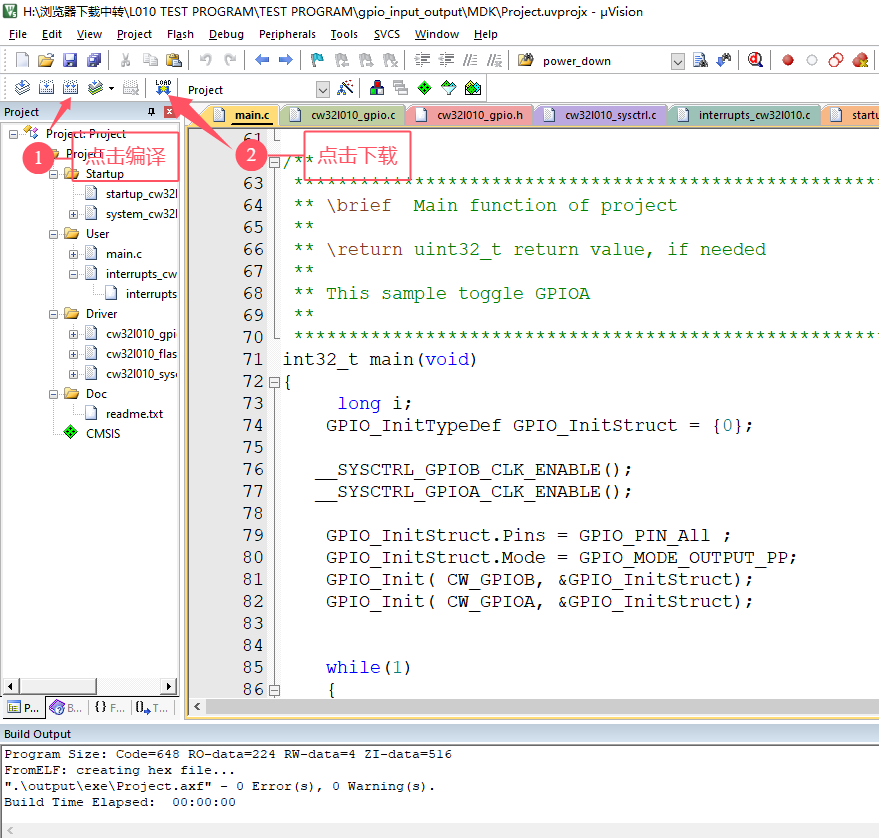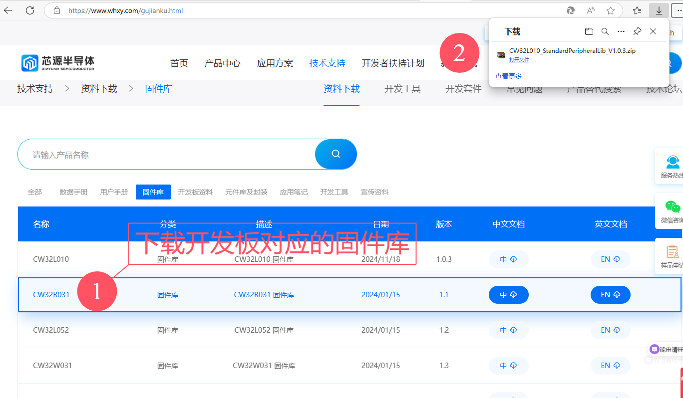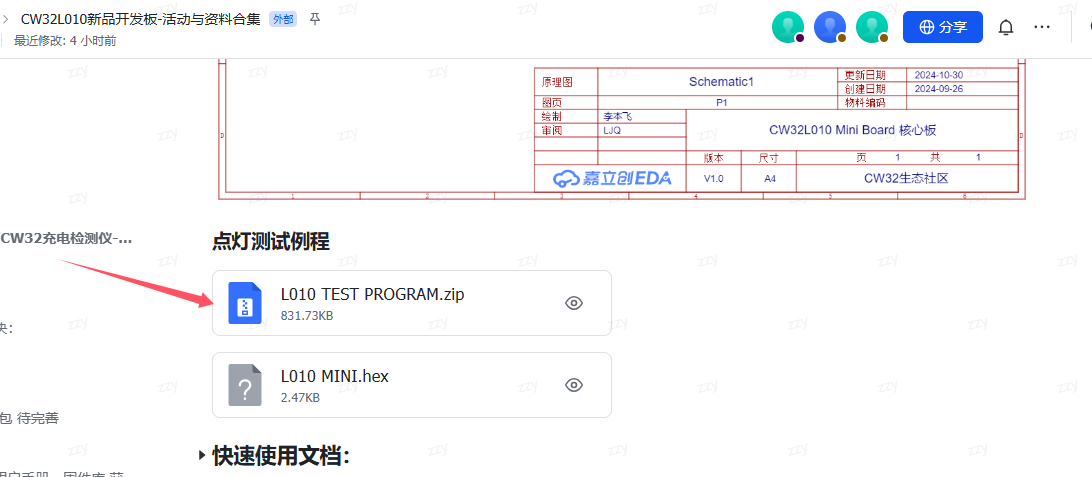打开 CW32L010新品开发板-活动与资料合集 - 飞书云文档,下载例程,