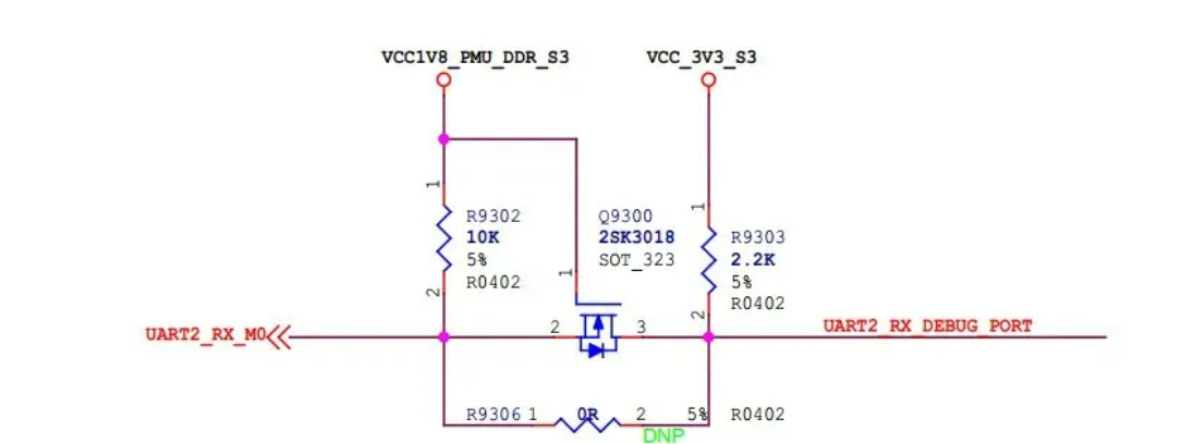 先抛出个问题,就是为什么下图这个电平转化电路的上拉电阻一个选了10k一个选了2.2k?如果您想不明白的话,就继续往下读吧,相信您读完也就明白了:
