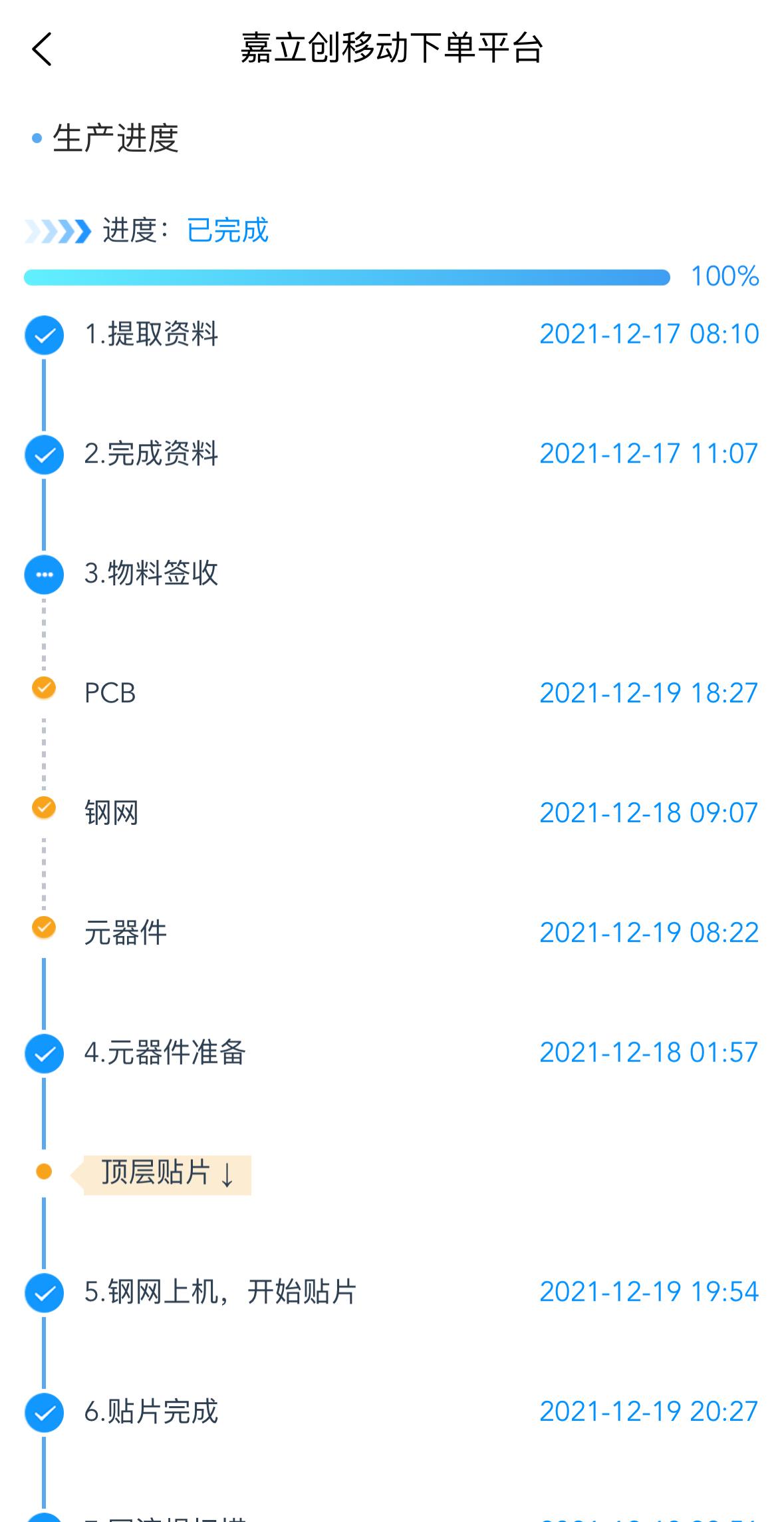 已付款的SMT订单可点击需查询订单的“进度跟踪”,生产进度尽在掌握。