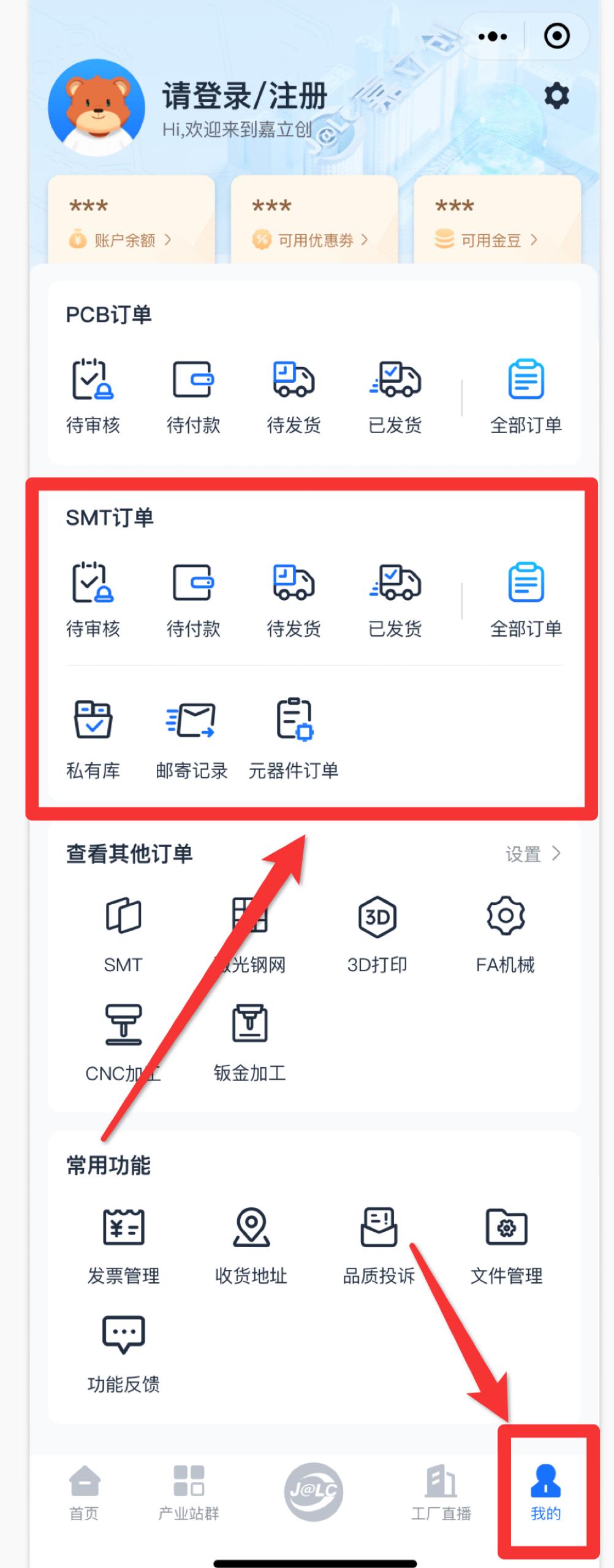 小伙伴们久等了!嘉立创SMT业务终于在移动端上线啦!服务便捷升级,有贴片需求的小伙伴随时随地一键即可查看您的SMT订单、邮寄元器件、管理私有库,轻松“搭建”您的每一个电路创意。