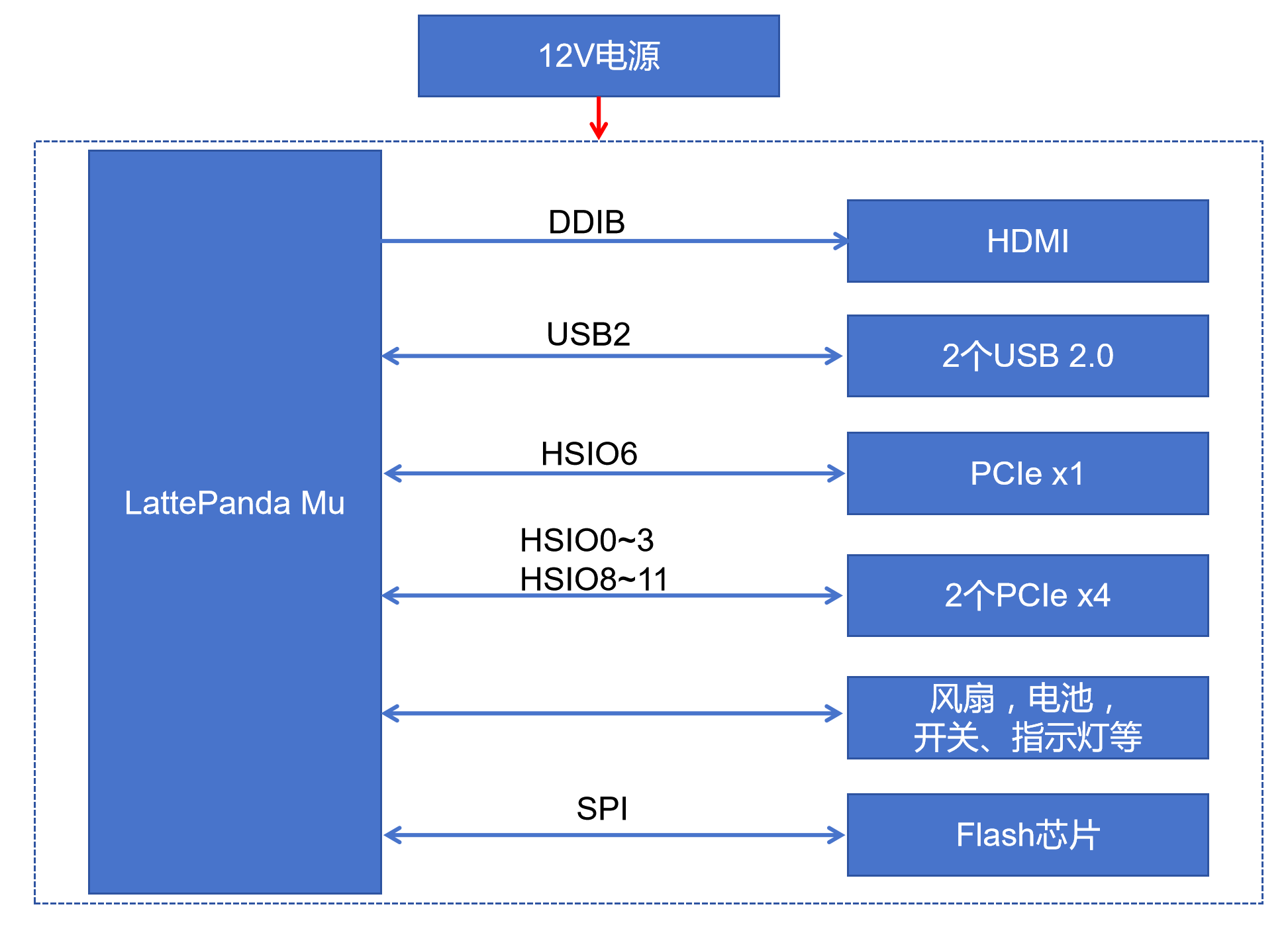 参考官方的设计文档,我将LattePanda Mu的IO资源分配如下图: