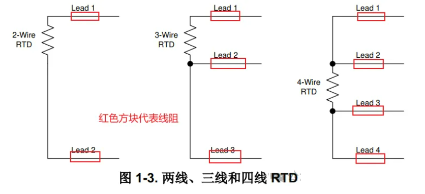 RTD 通常采用三种常见配置进行设计:两线、三线和四线。每种接线配置都需要不同的激励电流和电路拓扑以减少测量误差。