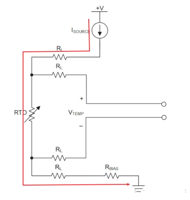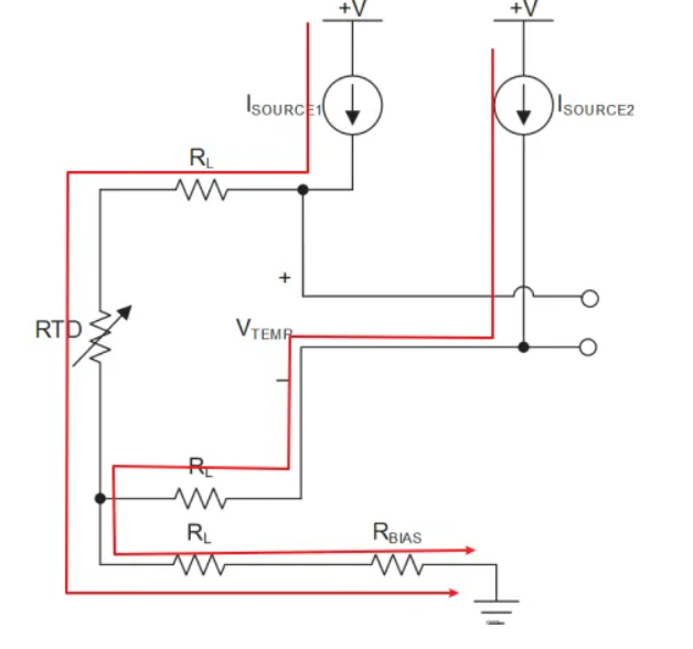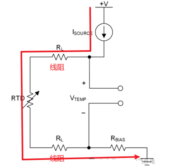Vtemp=Isource*(RL+RTD+RL),而其中的RL线阻不是我们想要的。