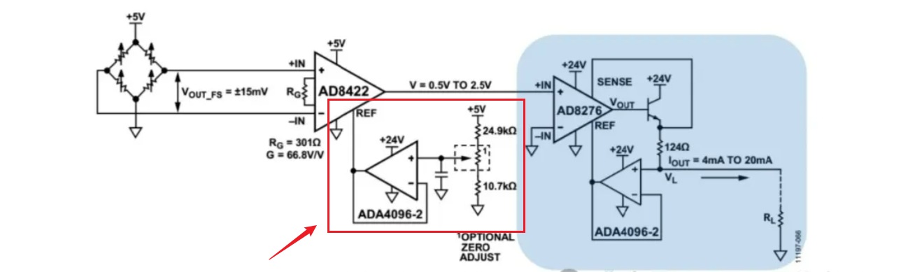 正确的处理方式应该是增加电压跟随器/使用基准源芯片作为基准,以减小基准源的输出阻抗。这种应用下,基准源的输出阻抗越小越好。下图里的这种加了跟随器再接到Vref管脚才是正确的基准偏置。