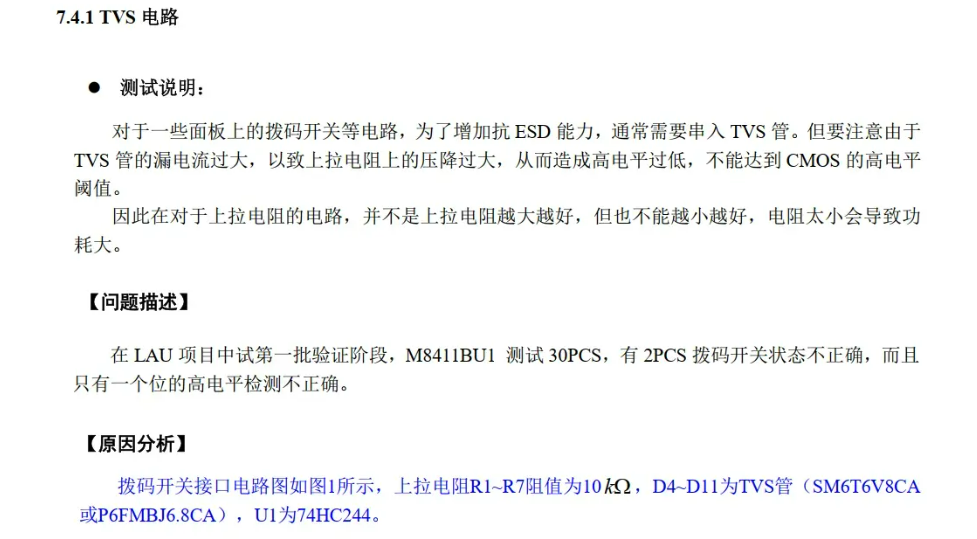 然后分享一份由于TVS漏电流引起的一则硬件BUG(网上的资料):