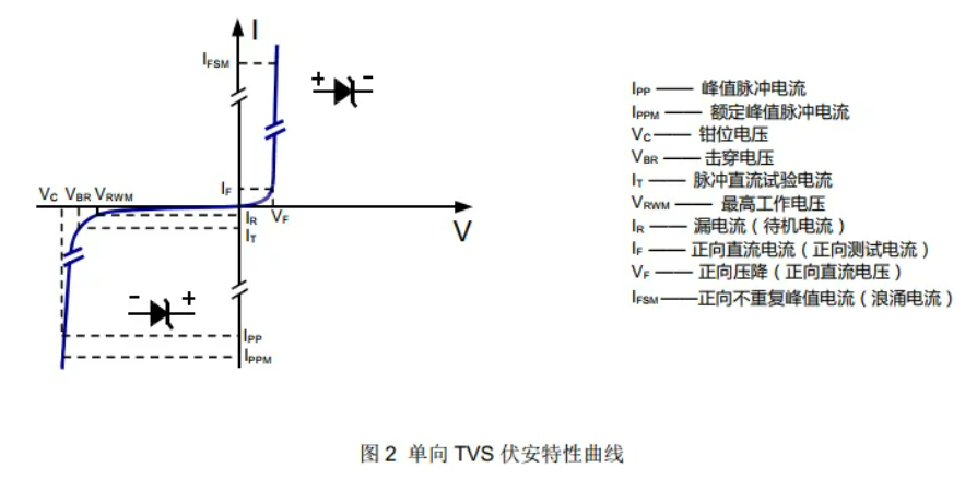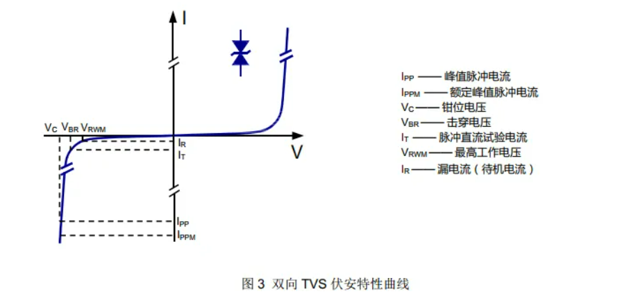 使用TVS的时候要注意其漏电流这一特性,在非工作状态下, 流过 TVS的电流称为待机电流(IR) 或漏电流, 并且该电流IR的大小随TVS 的结温而变化。