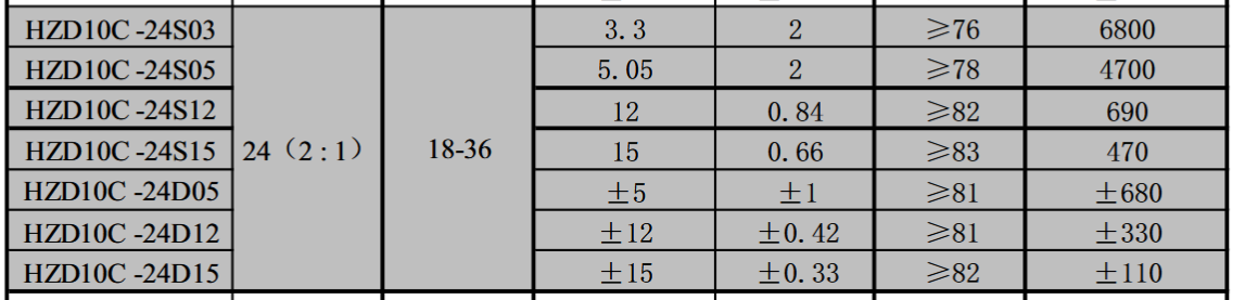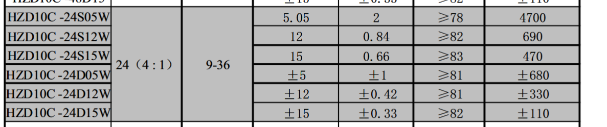 比如电源模块HZD10C-24D05W和HZD10C-24D05,虽然只隔一个W,外形及输入输出都一样,但是有一个区别是启动电压不一样。D05W启动电压是9V,而D05的启动电压是18V。
