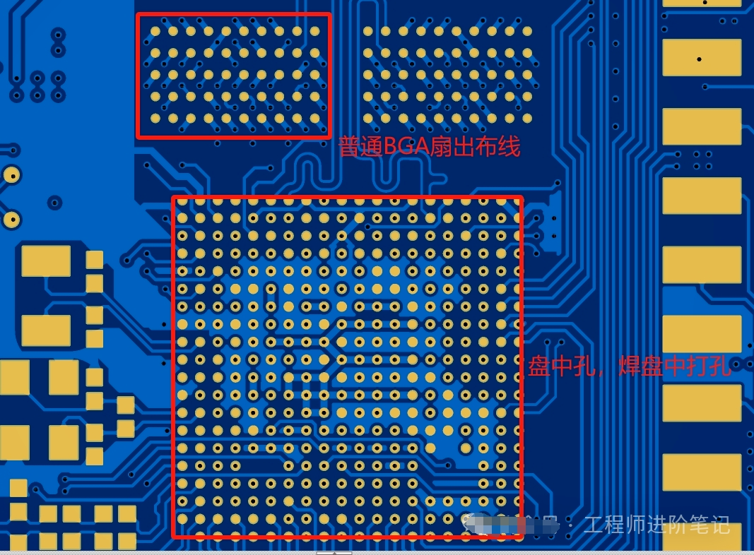 林工说:“我问外包商拿了PCB源文件,发现他们Layout是用常规的BGA扇出布线方式,导致PCB上面有较多的过孔侵占布线空间。”