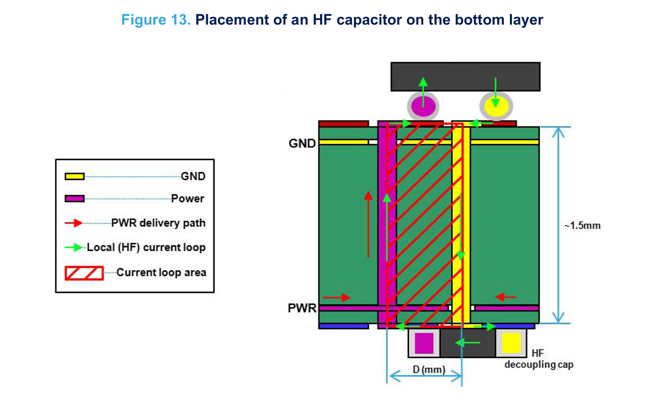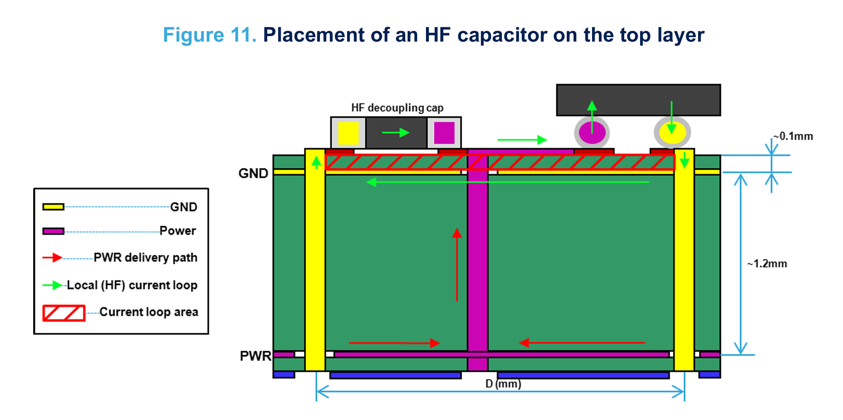 说明为什么 放在顶层更好, D在图片中显示,也许是电容走线距离