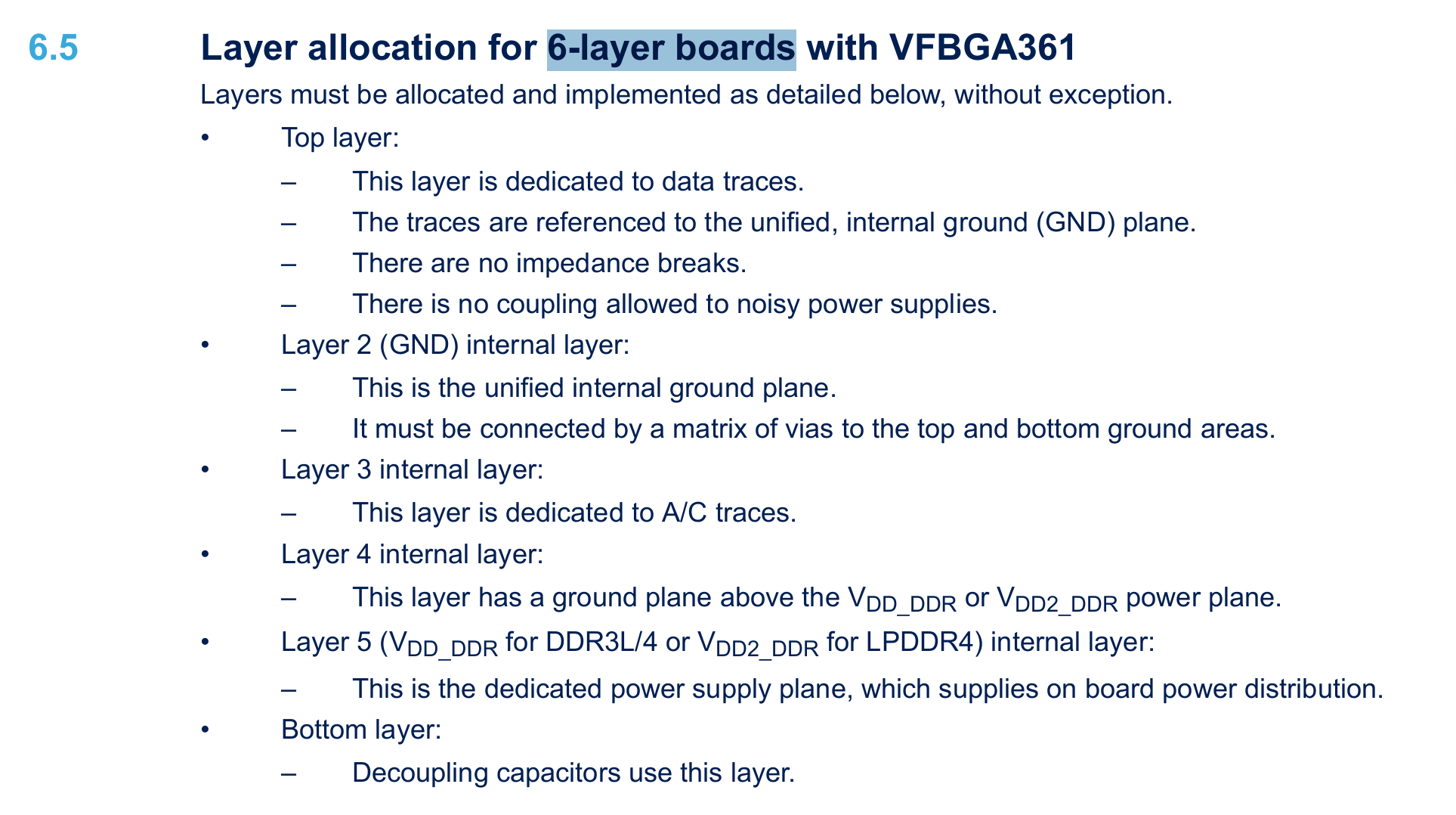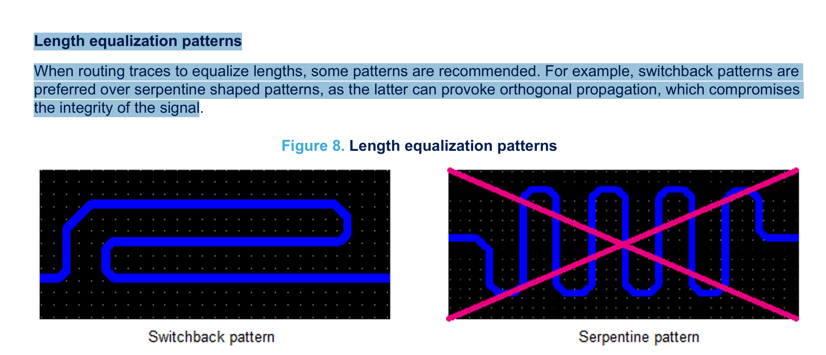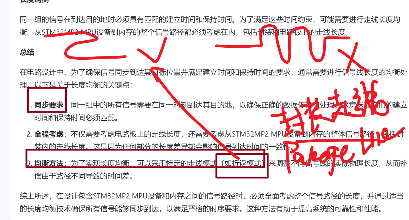 STMicroelectronics提供的模板和长度均衡表格可以简化信号走线长度均衡的任务。这些表格包含了封装的走线长度,并可以在STMicroelectronics网站上找到,例如STM32MP2 MPU上的DDR内存布线示例,网址为 www.st.com。