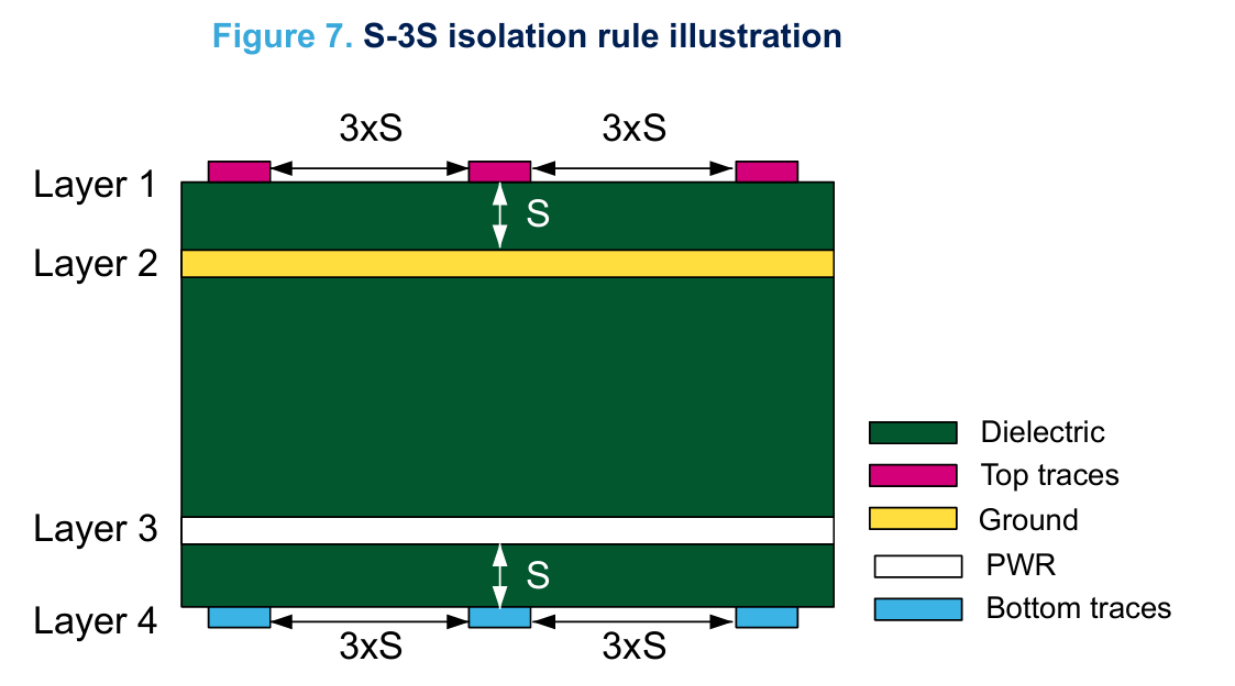 手段: S-3 S为参考面,当层间距离大于3倍S 走线间隔离