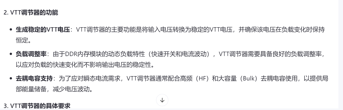 :VTT是终端电阻(RTT)的供电电压,用于匹配传输线的阻抗,减少信号反射,提高信号完整性。