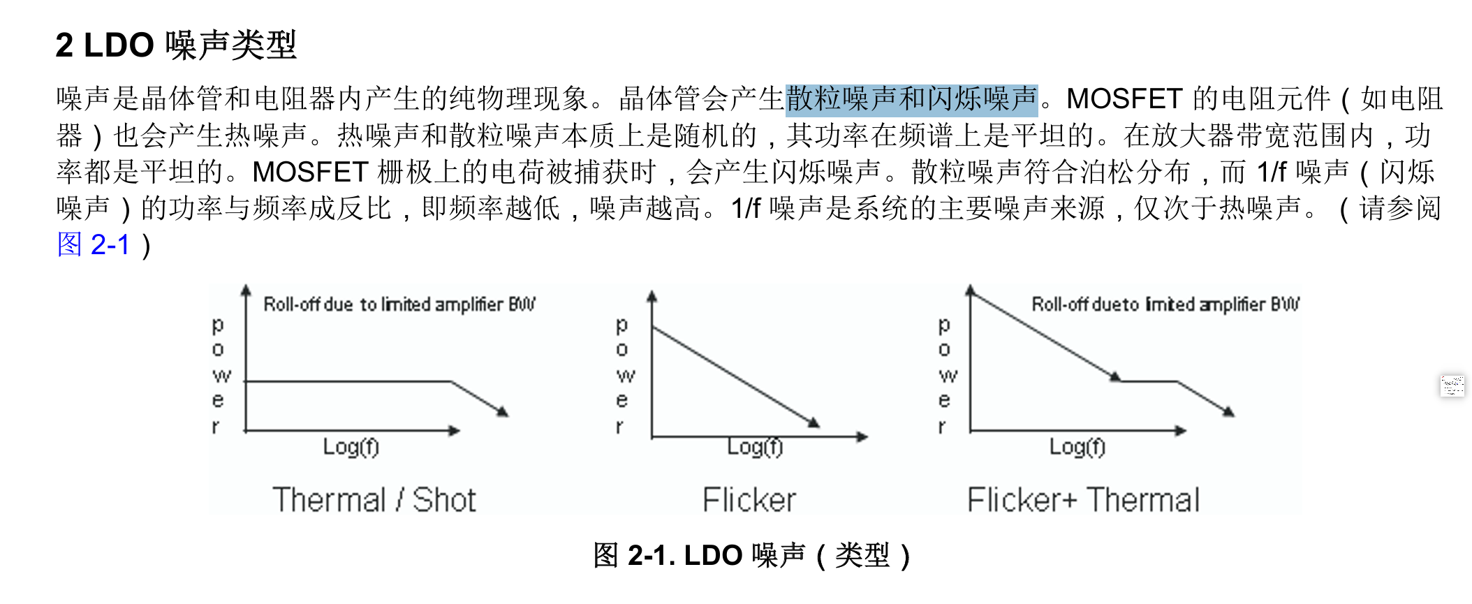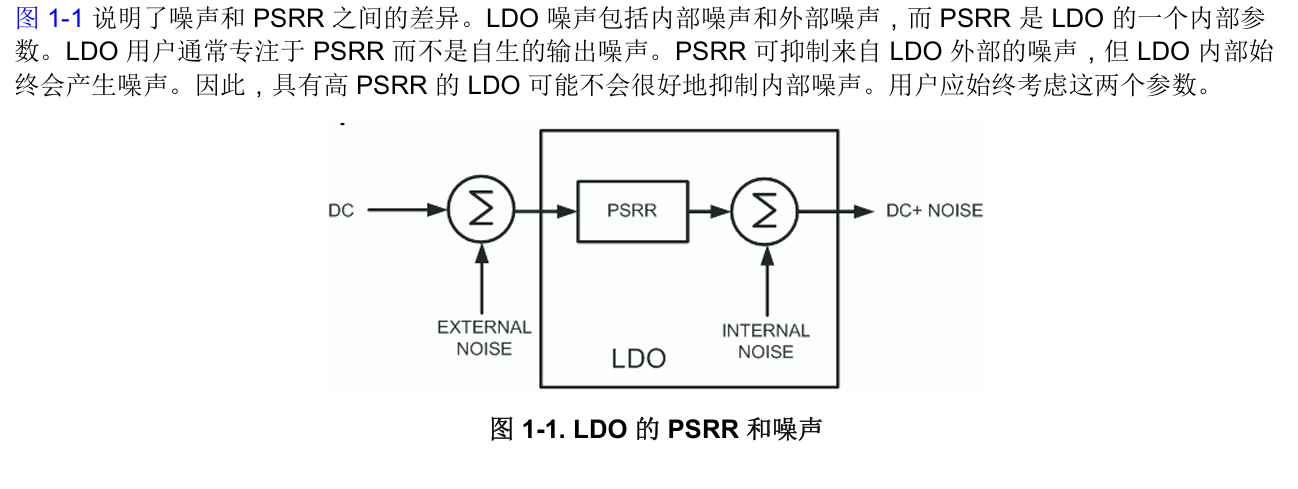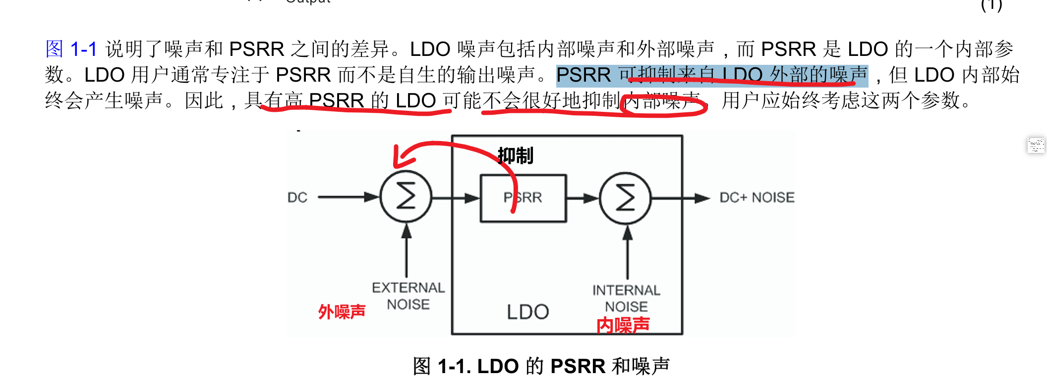 如图,LDO有内外噪声,而PSRR抑制的是外噪声,内噪声无时无刻在产生(热噪声、闪烁噪声和散粒噪声),