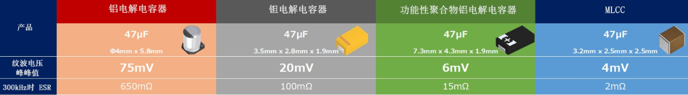 下图说明了300khz工作频率下不同电容器(47uF)的ESR