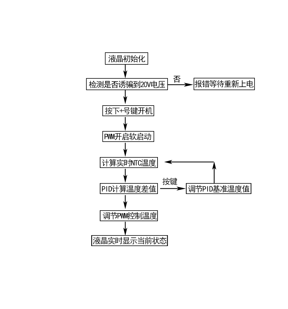 常用恒温方式有多种,比如说调节电热膜电压,电流,或者PWM调温等等,计算温度的方法也有多种,PID,比大小等。考虑到本项目需要更快速的恒温调温,采用了PID运算,并通过PWM调温。