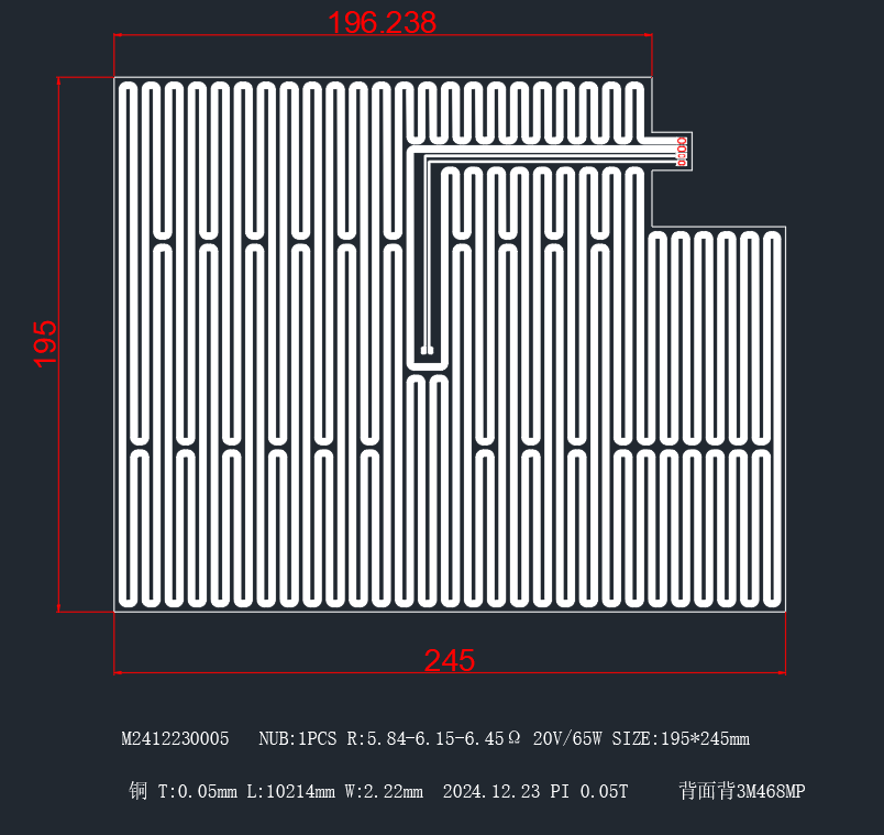2.195*245mm 带3M468MP背胶的嘉立创发热片一片
