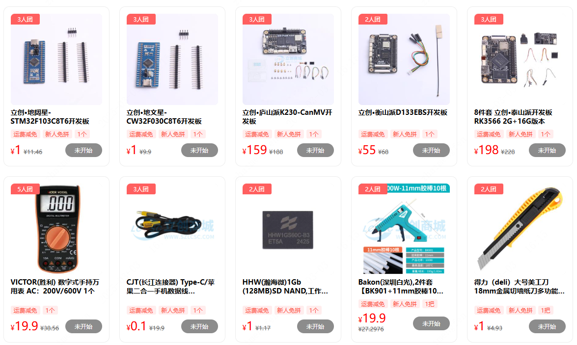 备受大家喜欢的多人团,3月7日当天不仅商品更多样,涵盖5款立创开发板、5款MRO工业品,部分商品新人还可享免拼优惠!