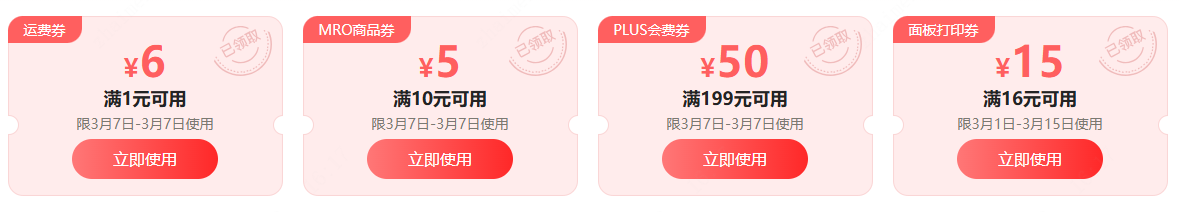 没抽到想要的券也没关系,以下优惠券所有用户都可直接领用,PLUS会员还可享超级补贴!