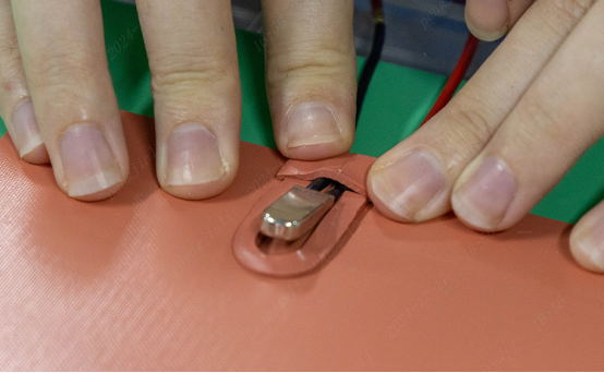 使用硫化机在发热片的封口位置进行150-180摄氏度3分钟高温硫化处理,这一步骤确保封口的密封性和耐用性。