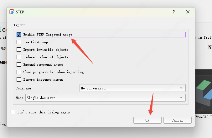 第一步:先将step文件导入,勾选“Enable STEP Compound merge”