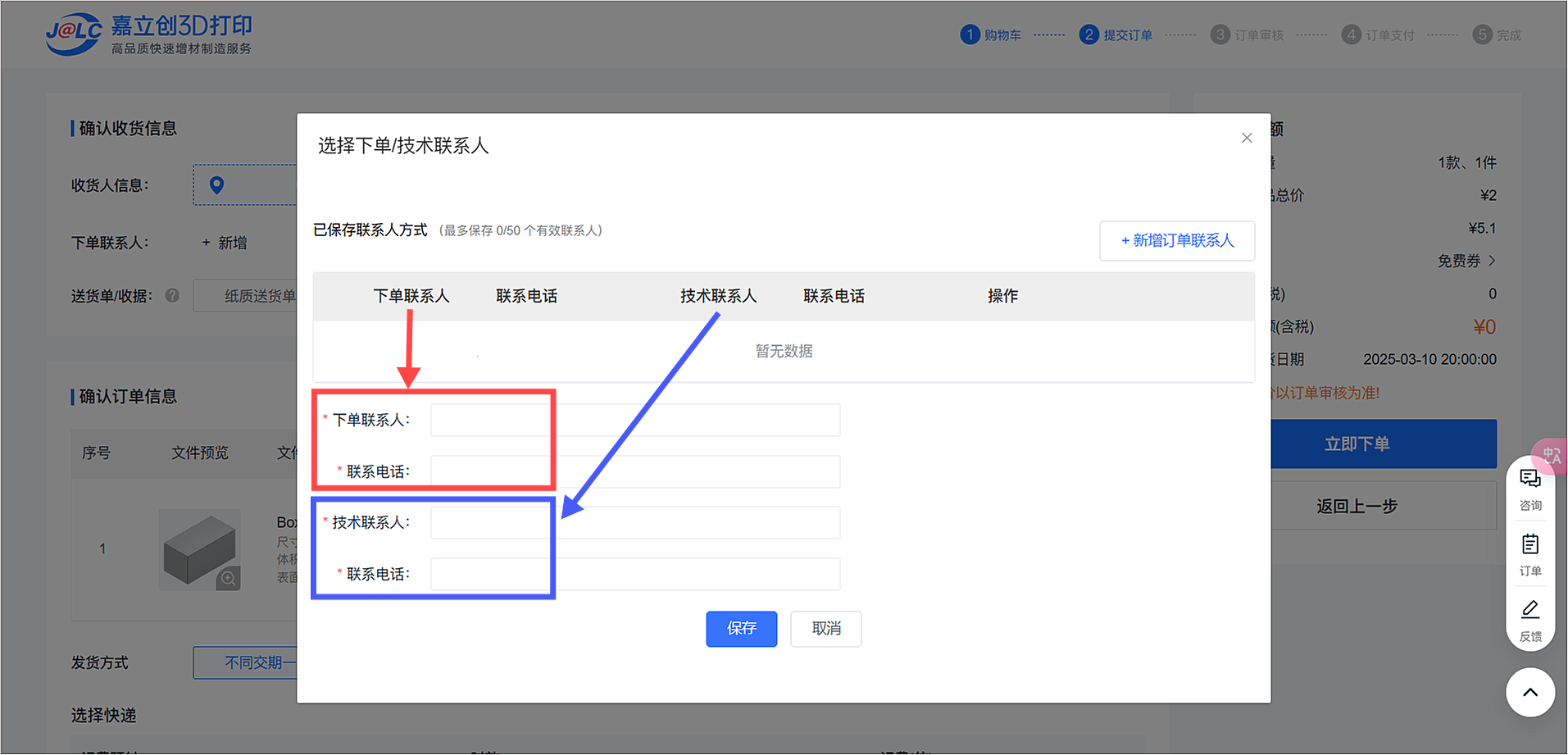 经常有朋友在后台留言:3D打印下单时,技术联系人和下单联系人该怎么填?怕填错怎么办?别急,JLC3D小编来帮你理清楚!