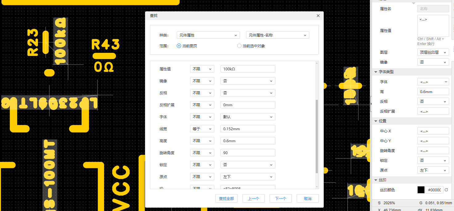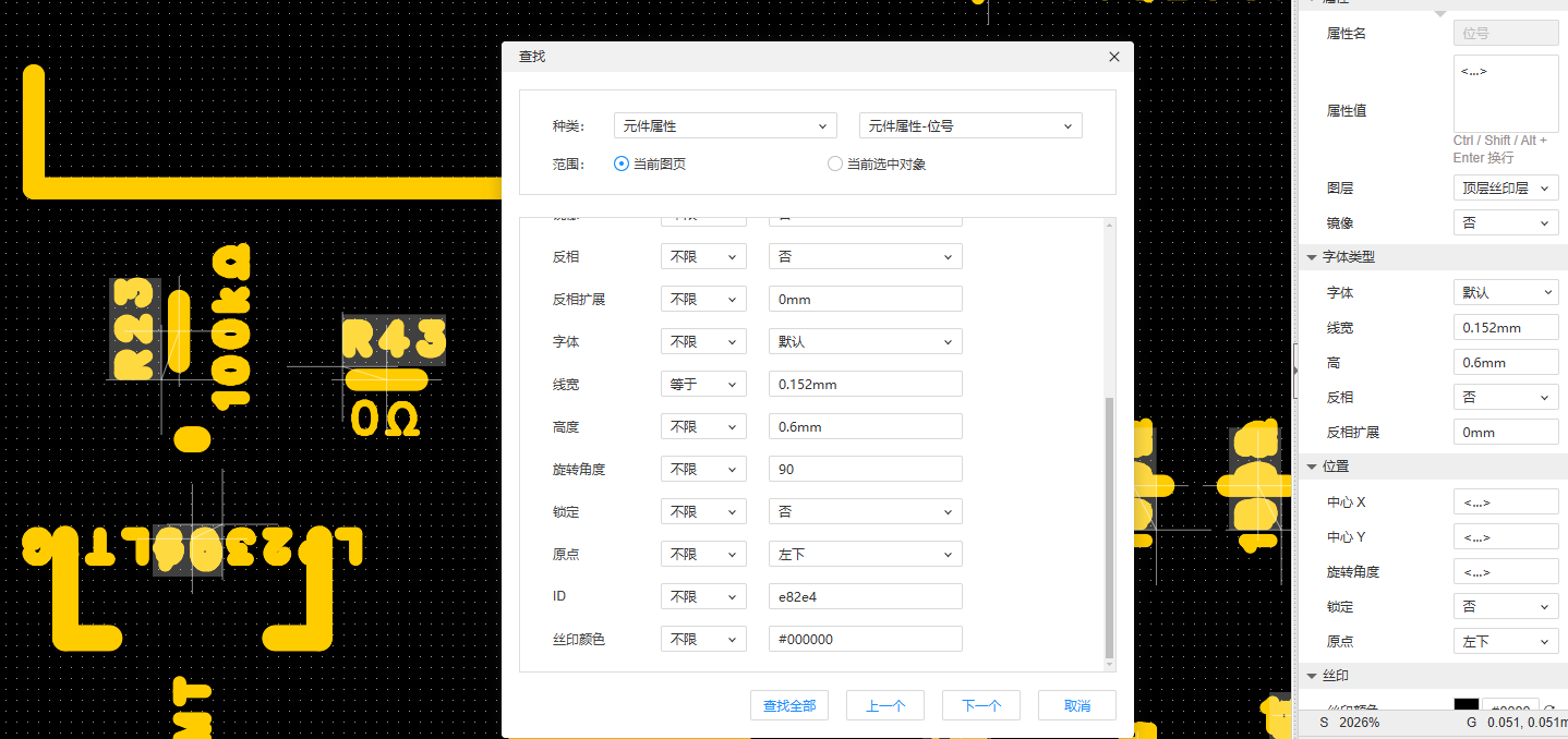 同样的操作,当编辑元件属性-位号时,选中线宽等于0.152mm,字高和字体线宽均可以更改。经过多次尝试均存在这个问题,属于软件BUG,请更改。