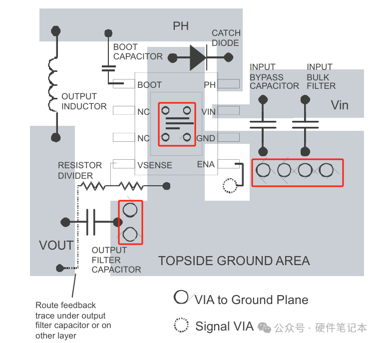 DC/DC电源建议lay板遵循以下参考设计原则,该打过孔的地方,一定不能省。