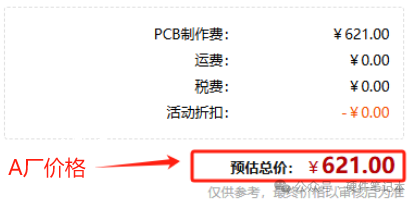 A厂总价621元,无优惠。