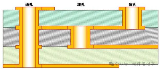 过孔,简单来说,就是PCB板上用来连接不同层之间电气信号的小孔。从图片来看,过孔一般分为通孔,埋孔和盲孔。