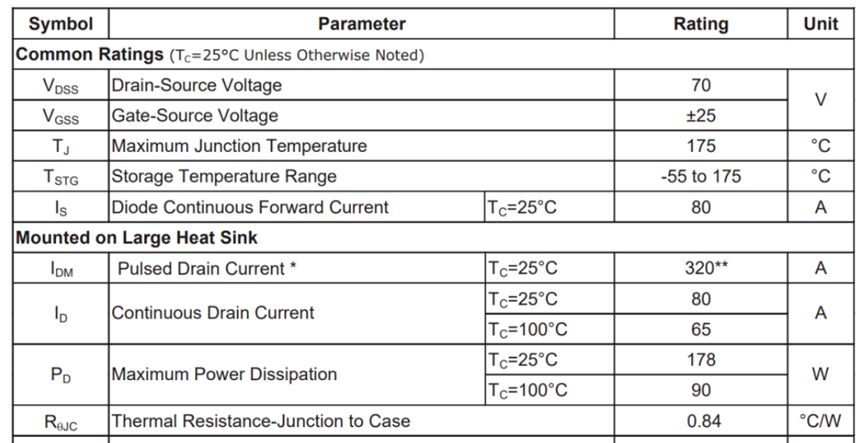 MOS的型号是HY1707,这是HUAYI(华羿微)的一颗70V80A6mΩ的NMOS,封装是TO220FB-3L。价格大概在1.5差不多可以拿下,这个猜的也差不多。参数如下: