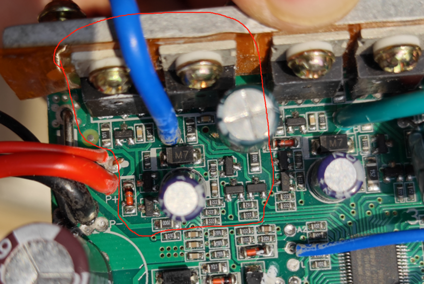 但是这个时候还不能把电路板抽出来,因为MOS散热是用螺丝固定在侧壁的,也需要拆下来,然后就可以把电路板抽出来了。